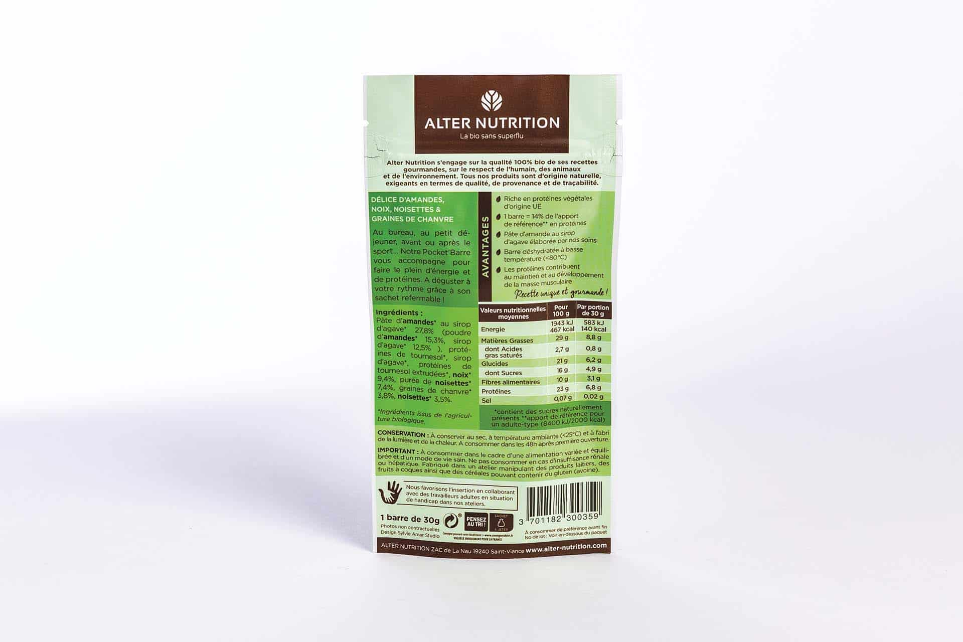 Barre protéinée noix, amandes et graines de chanvres 30g | Pocket’barre