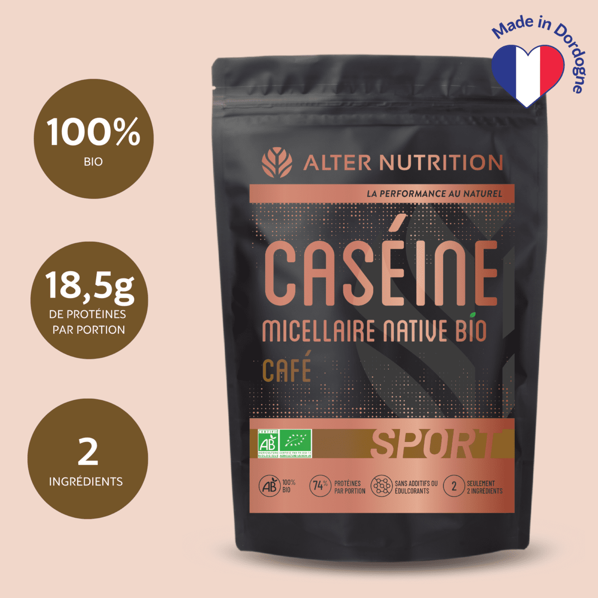 Alter Nutrition élabore, transforme et confectionne l’ensemble de ses paquets de caséine micellaire native bio dans son atelier en Dordogne. Alter Nutrition n’utilise que des protéines issues de la production de lait à 100% d’origine UE.