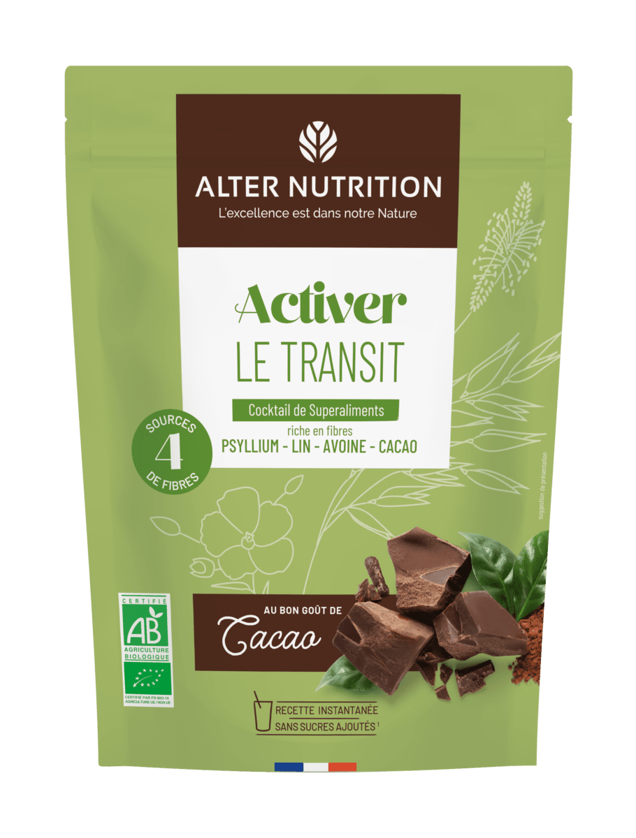Transit trop rapide ? Constipation ? Ce mélange de superaliments bio est fait pour vous ! Grâce à ses ingrédients naturels, comme le psyllium, l'avoine, et le lin, ce cocktail régule les troubles du transit et favorise une digestion optimale. En plus d'apporter des fibres essentielles pour votre corps, le cacao bio et équitable ajoute une délicieuse note gourmande à chaque gorgée !