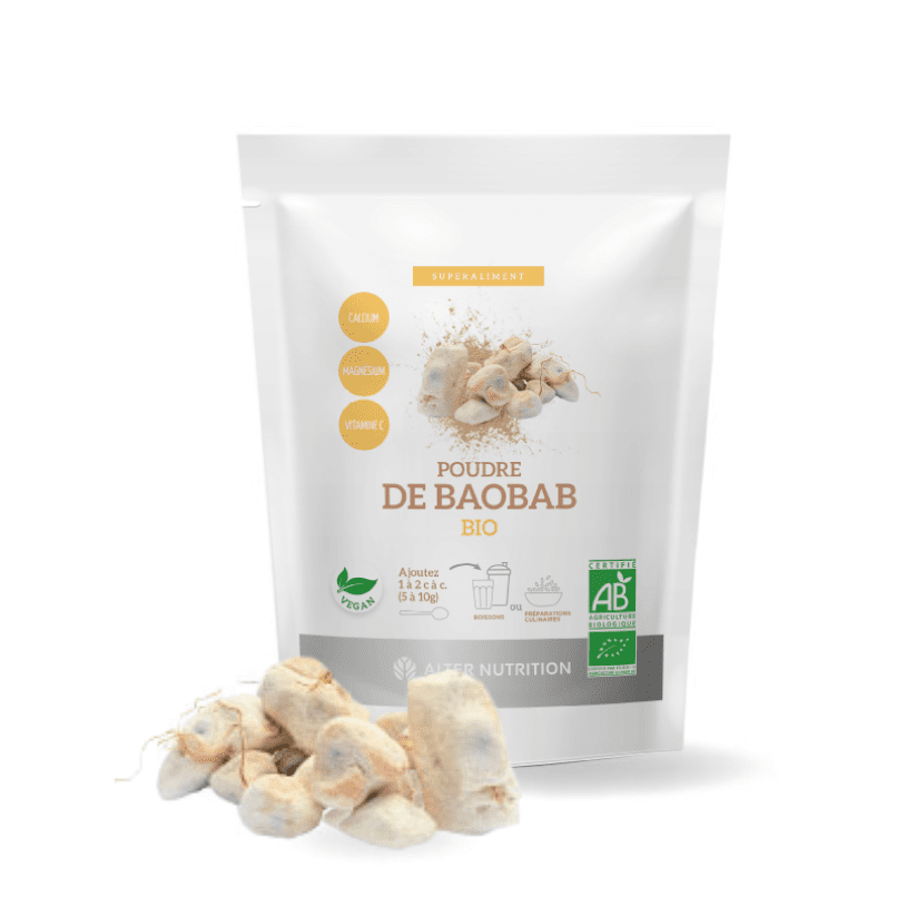 Une cuillère à café (5 g) de poudre de baobab bio suffit à vous fournir l’intégralité des nutriments.