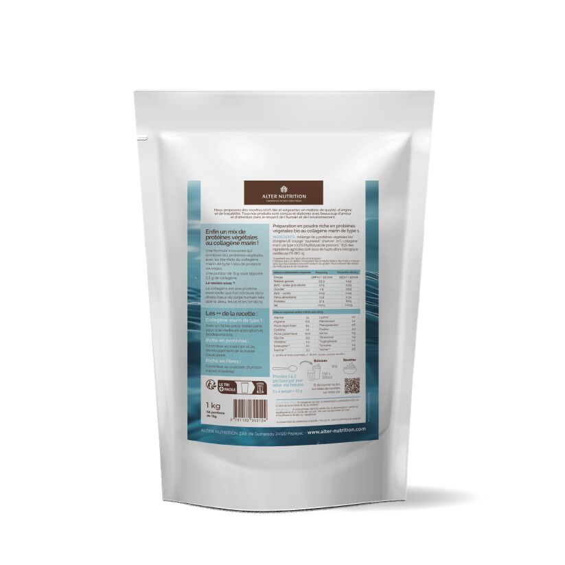 Une formule innovante qui combine les bienfaits des protéines végétales au vertus du collagène marin de type 1 issu de poissons sauvages. Une portion de 15 g vous apporte 2,5 g de collagène ! Le collagène est une protéine essentielle que l'on trouve dans divers tissus de notre corps : la peau, les os, les tendons...