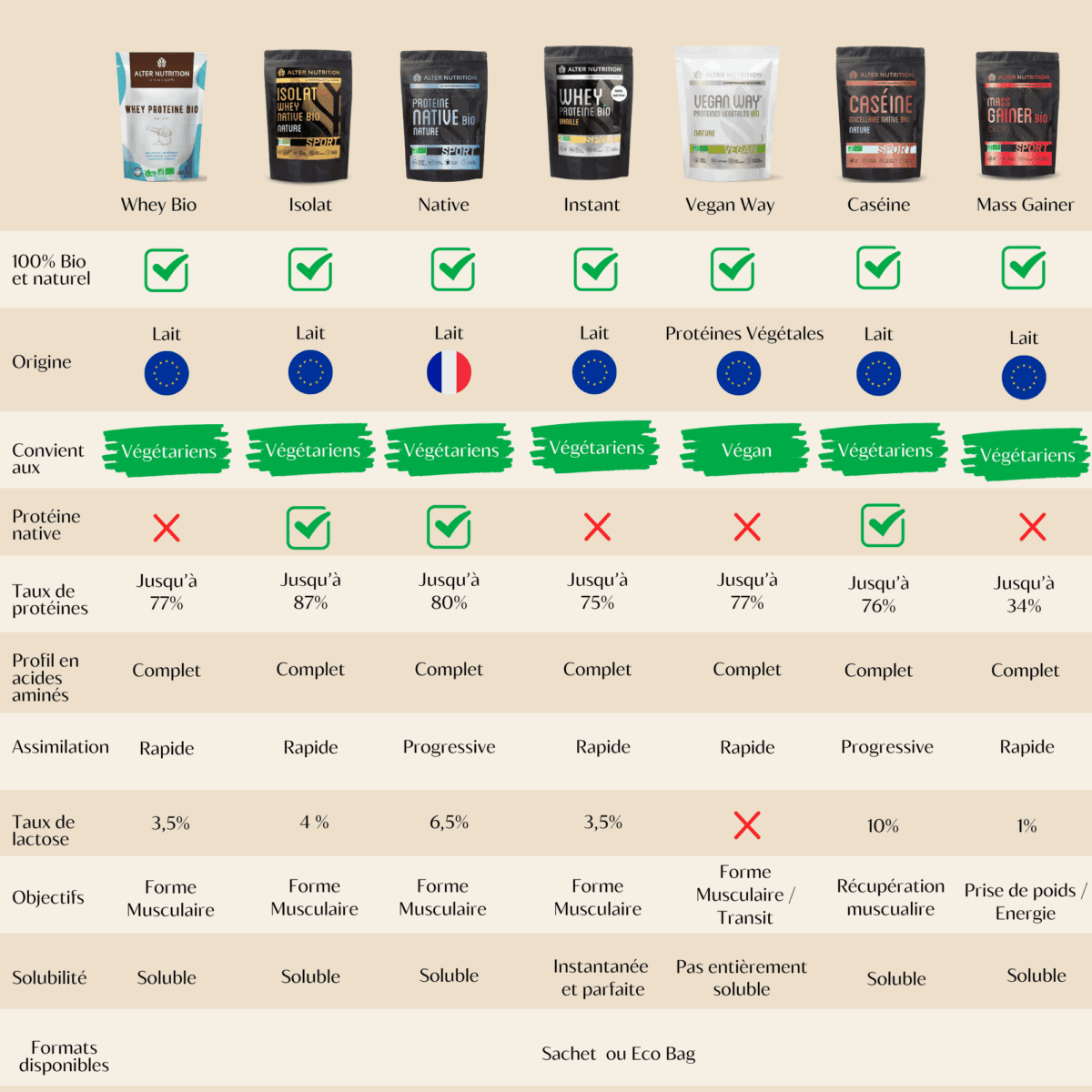 Alter Nutrition élabore, transforme et confectionne l’ensemble de ses paquets de whey proteine bio dans ses ateliers en Dordogne. Alter Nutrition n’utilise que des protéines issues de la production de lait à 100% d’origine UE.